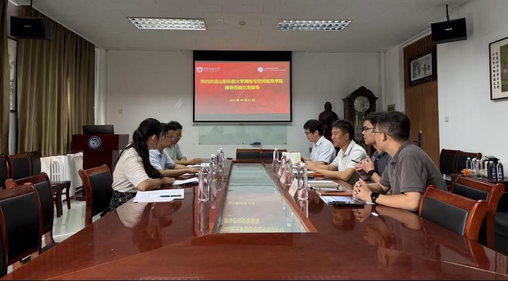 在中国地质大学(北京),涂锐一行与土地科学技术学院副院长杨红磊教授等人座谈,双方分别介绍了学院的基本情况,并围绕测绘学科发展、研究生培养、人才引育等议题进行了深入交流。