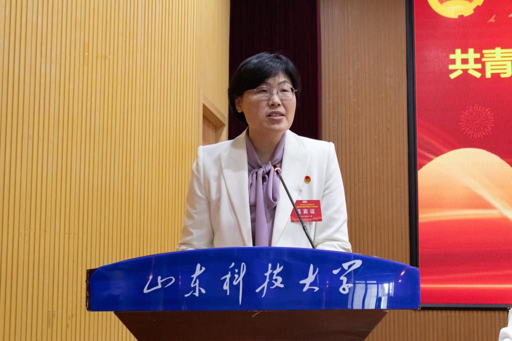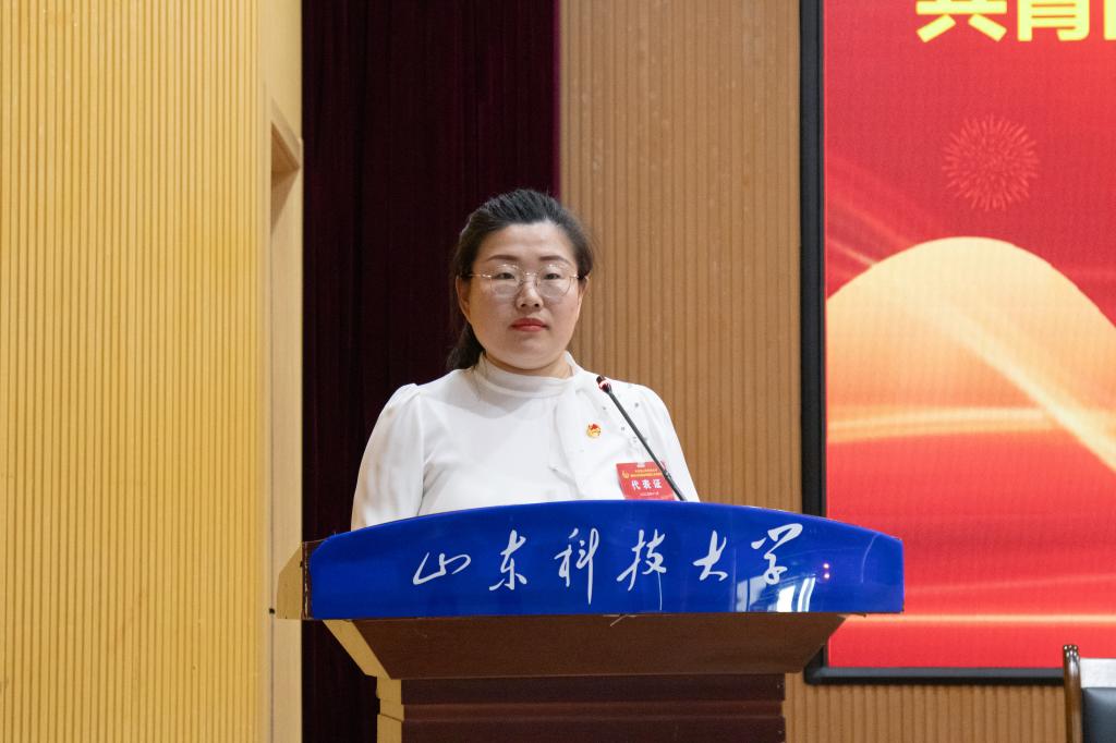 孙金香代表共青团山东科技大学测绘与空间信息学院委员会,向大会作了题为《绘就青春底色 丈量时代征程——为建设工科主导、特色鲜明的高水平应用研究型大学贡献青春力量》的工作报告。报告全面总结了学院近年来共青团工作成效,科学分析了学院共青团工作的新形势和新要求,规划了下一阶段共青团工作的思路和举措。