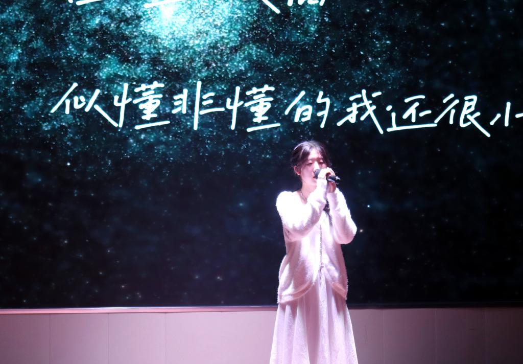 2022歌手大赛中获得冠军,在2023年山东科技大学朗诵比赛中荣获一等奖,在山东科技大学合唱比赛中获得二等奖。于我而言,每一次站在聚光灯下,都是一种历练与成长。同时作为校大艺团声乐队的一员,参加了“二十大”快闪、学习党的二十大汇报展演暨五四颁奖典礼等大型演出活动,更加坚定了听党话、跟党走的信心和决心。