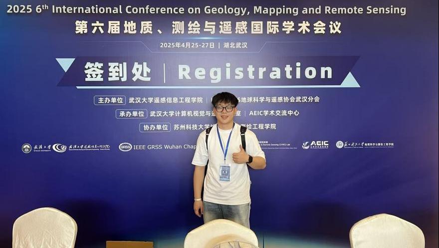 对科研的好奇心与求知欲,让苏琦从大一开始就主动迈出舒适区,积极加入课题组,跟着老师学习科研方法、参与项目实践。作为负责人在大二学年成功申请国家级大学生创新创业训练计划项目,题目为《基于星载SAR的海岸带空间信息监测与演变分析》,他带领团队成员从数据采集、模型构建到成果总结的每一个环节,面对数据处理的繁琐、模型优化的瓶颈,始终以“钉钉子”精神反复试验、不断论证,带领团队攻克一个又一个技术难题,最终项目获评“优秀结题”。这段科研经历不仅让他的科研能力得到了质的提升,更让他收获了丰硕的学术成果:申请计算机软件著作权5项,实用新型专利 2 项,以第一作者身份发表SCI二区论文一篇、EI会议论文一篇,并在2025年第六届地质、测绘与遥感国际学术会议完成海报汇报,将山科青年学子的科研思考与专业潜力展现在国际同行面前。