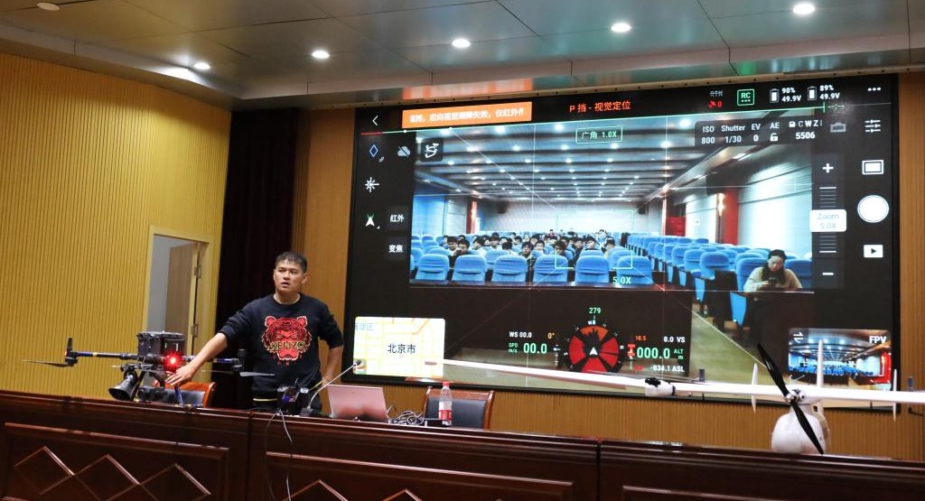 此次科普活动包括无人机基础知识与相关政策法规、无人机执照分类与市场趋势、无人机前沿行业应用案例分析以及无人机外业实操演练等相关内容,由睿飞无人机培训学校教员贠明臣进行讲授与演示。贠明臣通过详细讲解无人机行业背景与行业应用,以及睿飞无人机培训学校培训体系与特色课程,使同学们对无人机技术及其应用产生了浓厚的兴趣。与此同时,贠明臣通过实战视频演示了多旋翼无人机的操控界面,极大地吸引了参会学生的注意力,现场学习气氛十分活跃。随后,移步至地学文化广场进行多旋翼无人机操控演练,通过实战演练让同学们进一步了解多旋翼无人机的操控步骤以及注意事项。