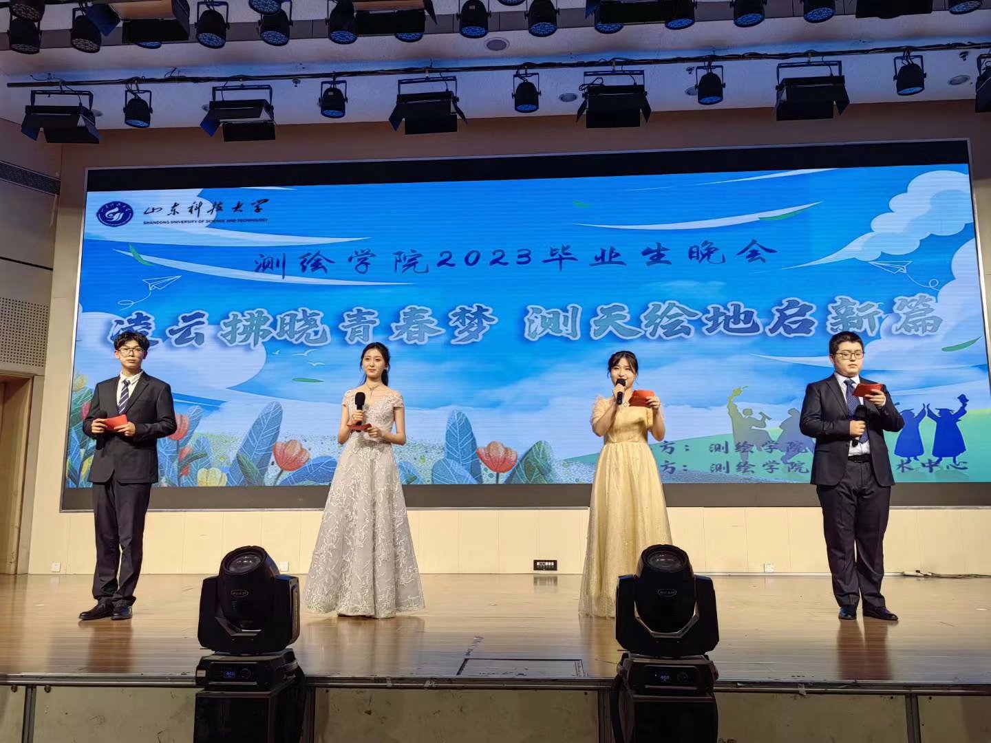 在大学生活动中心举办了“凌云拂晓青春梦 测天绘地启新篇”2023届毕业晚会,学院党委副书记兼副院长吴昊、副院长王瑞富、刘尚国、团委书记孙金香及学院部分教师、全体辅导员参加。