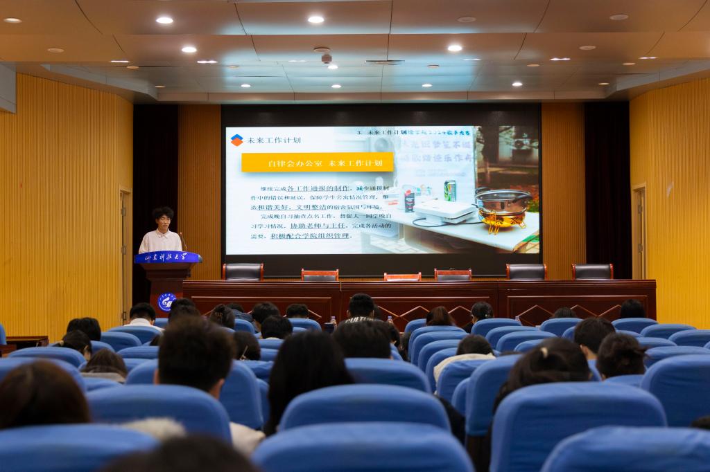 学在J6-434召开2024—2025第一学期学生组织述职评议大会。学院党委副书记兼副院长吴昊、学工办主任(团委书记)孙金香、全体专兼职辅导员出席会议,学生组织主要负责人参加会议。